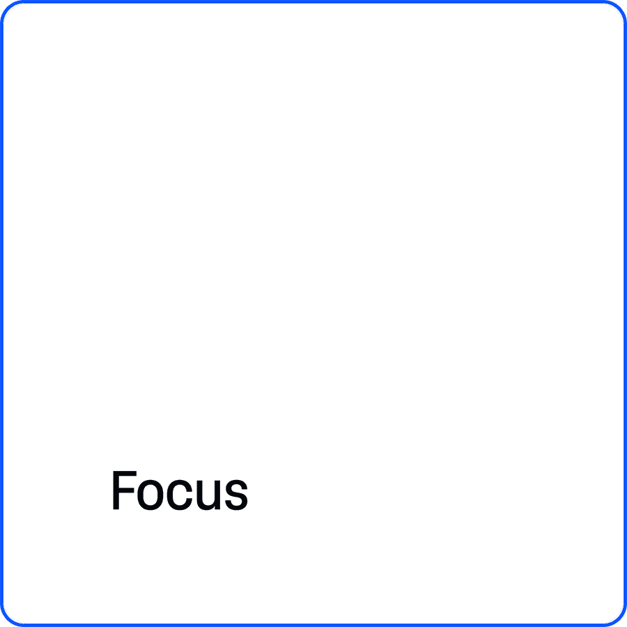 The entire card is focused for clickable interaction variants. Actionable cards with nested interactive elements apply focus to the nested elements exclusively.